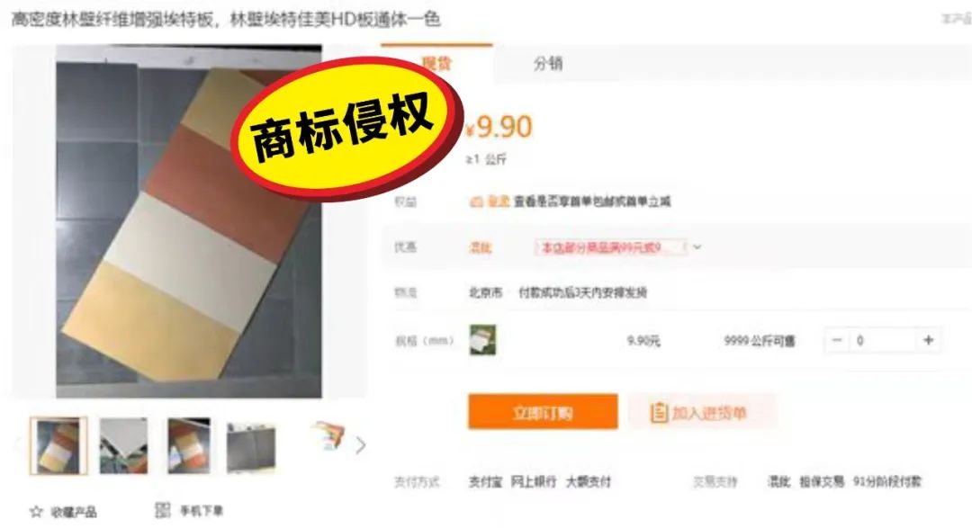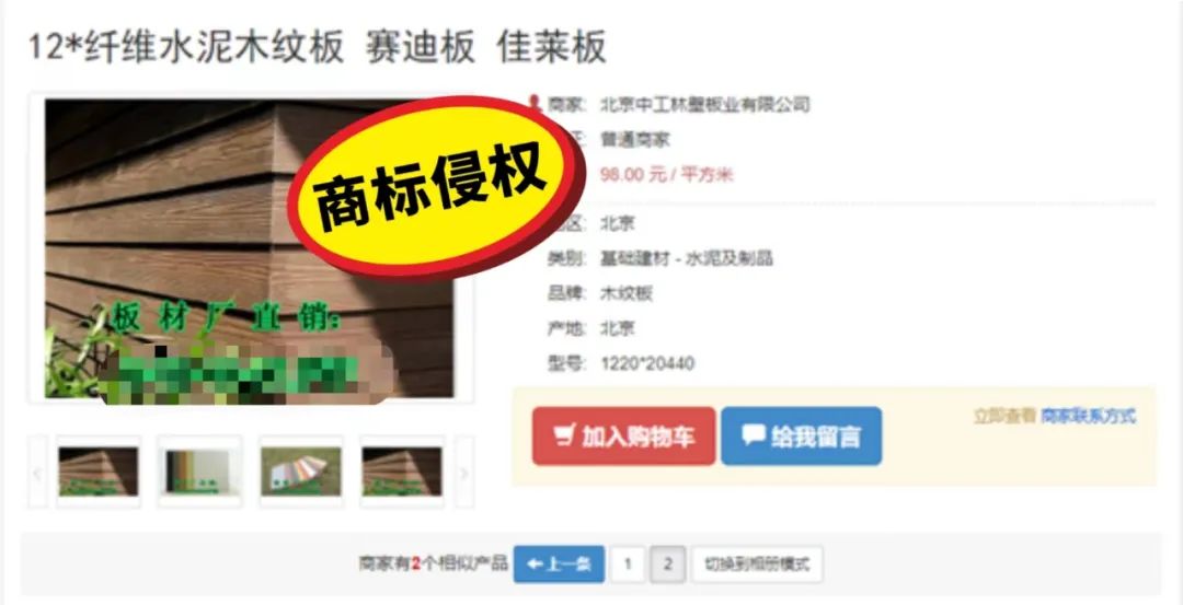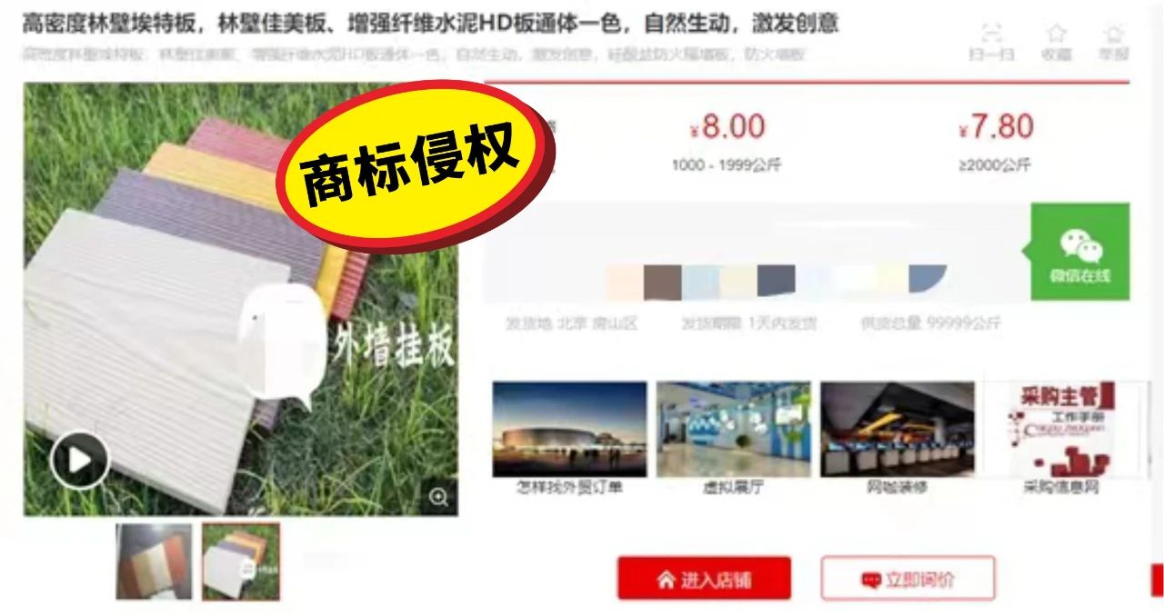 在本案中,“北京中工林壁板業(yè)有限公司”在“杭州商易信息技術有限公司”經(jīng)營的“建材網(wǎng)”上進行建筑板材產(chǎn)品的招商推廣,大量使用了“埃特”、“埃特佳美”、“佳壁”、“賽迪”及“佳萊”等,同時也在“1688批發(fā)網(wǎng)”、“九正建材網(wǎng)”、"中國供應商網(wǎng)”等平臺上銷售、招商推廣其板材產(chǎn)品,同樣大量使用“埃特”、“埃特佳美”、“佳壁”、“賽迪”及“佳萊”等標記,相關侵權(quán)及不正當競爭行為的部分證據(jù)如下: